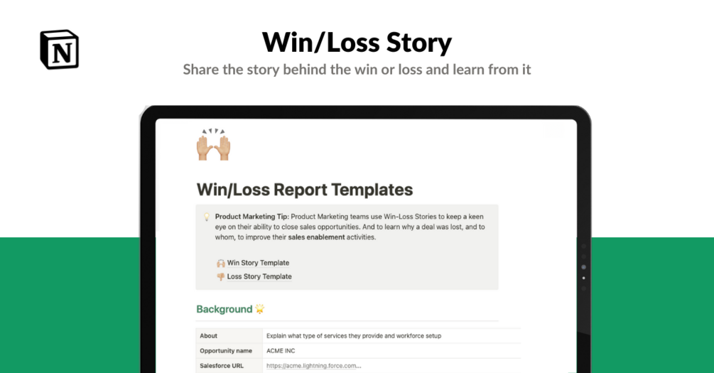 • Win Report template